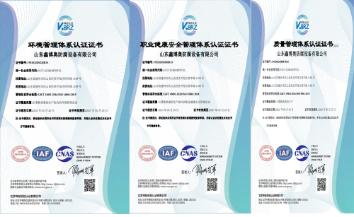 通過(guò)了ISO9001質(zhì)量管理體系、ISO14001環(huán)境管理體系、ISO45001職業(yè)健康安全管理體系三體系認(rèn)證。
